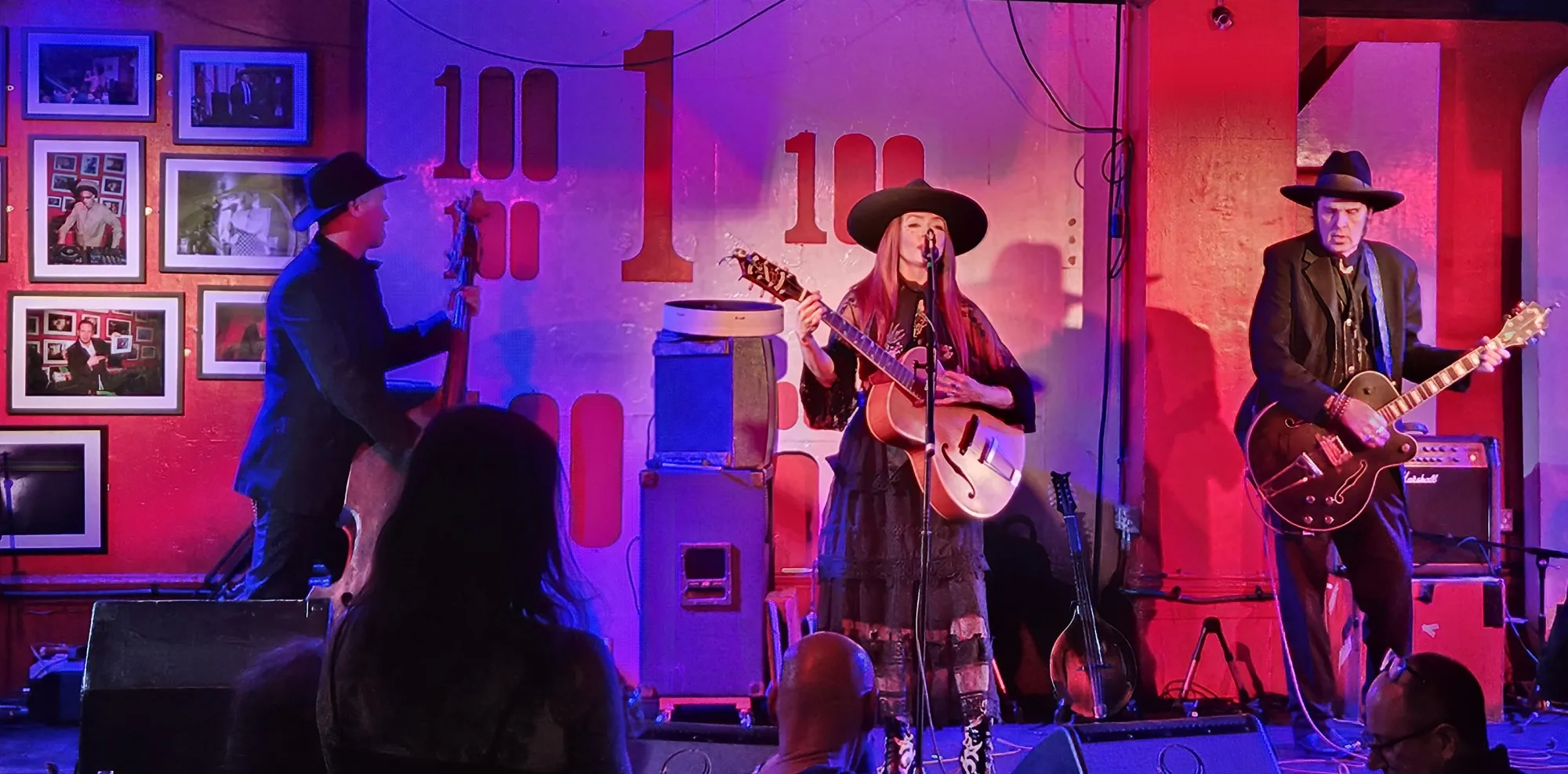With the violin and contrabass, plus some catchy guitar riffs from the well-known Chopper Franklin (who’s played guitar and bass for The Cramps, the Mau Maus, and more), Mather Louth’s voice and stage presence really take the audience to a rich, dust-bowl vibe, making it feel like they’ve walked right out of a “Weird West” or Southern Gothic horror film.